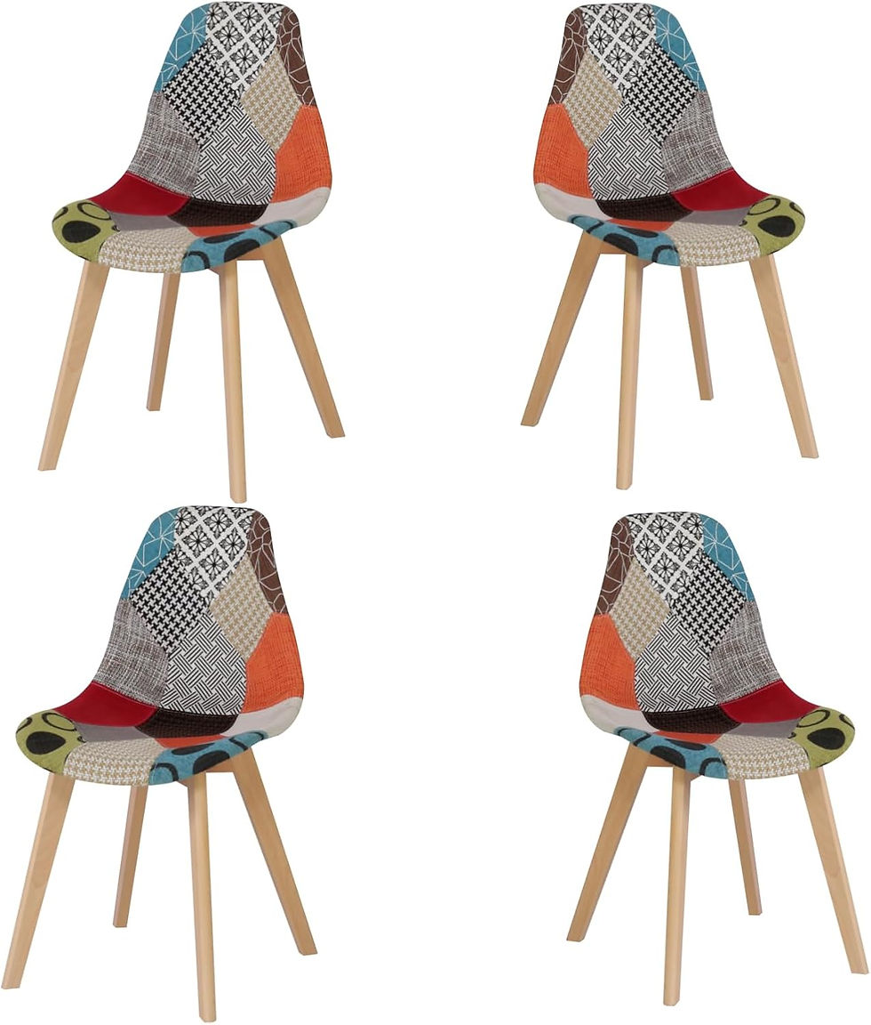 Set of 4 Patchwork Dining Chairs – Scandinavian Style, Solid Wood Legs