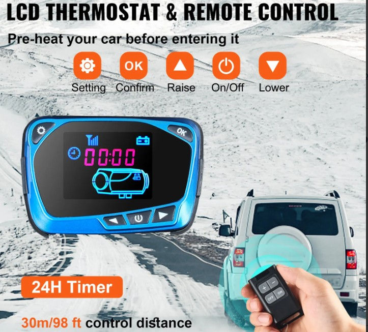 8kW Diesel Air Heater – LCD + Remote – 12V – Fast Heating for Car, Van, Camper,