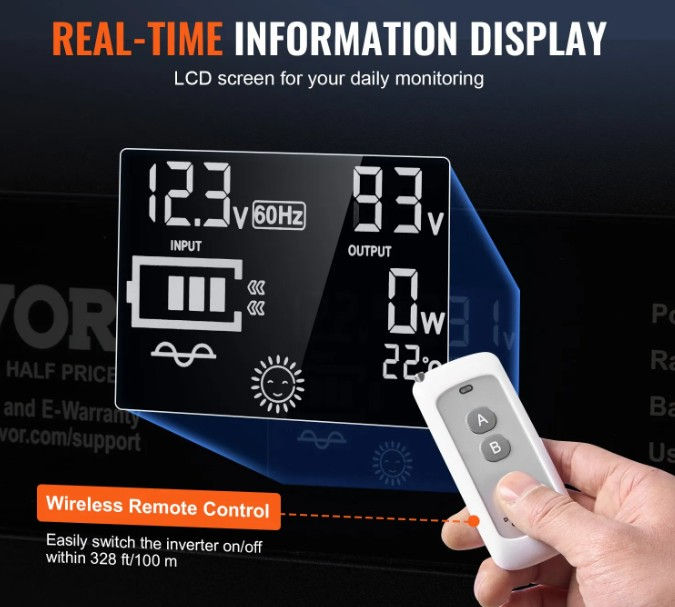 Pure Sine Wave Inverter – 2000W | DC 12V to AC 230V | LCD Display & Remote | CE/