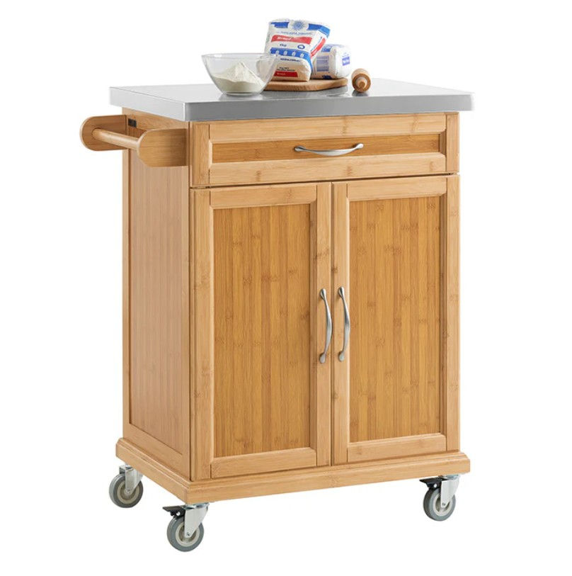 Bamboo Kitchen Trolley with Stainless Steel Top – Rolling Serving Cart