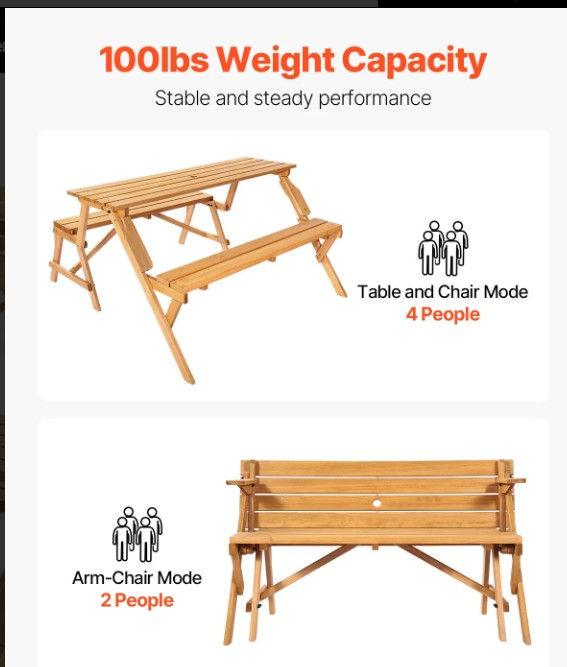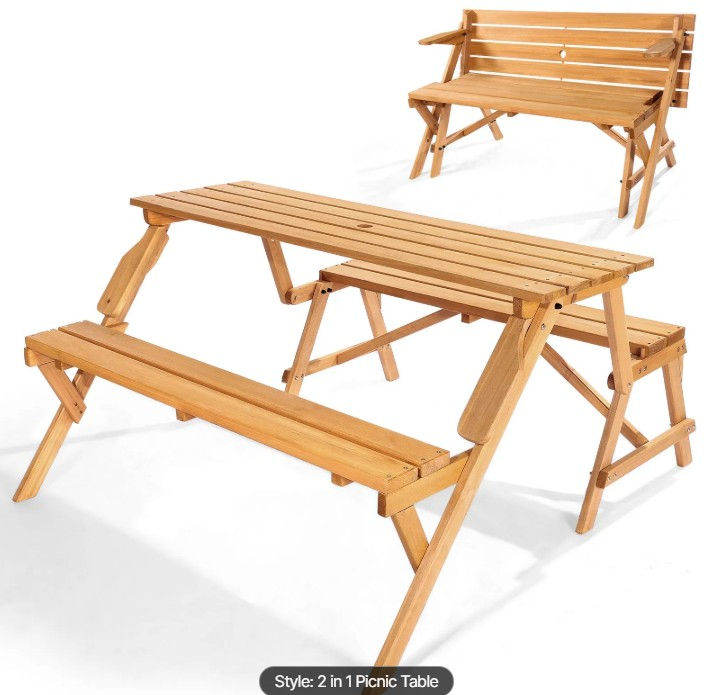 2-in-1 Convertible Wooden Picnic Table & Bench Set